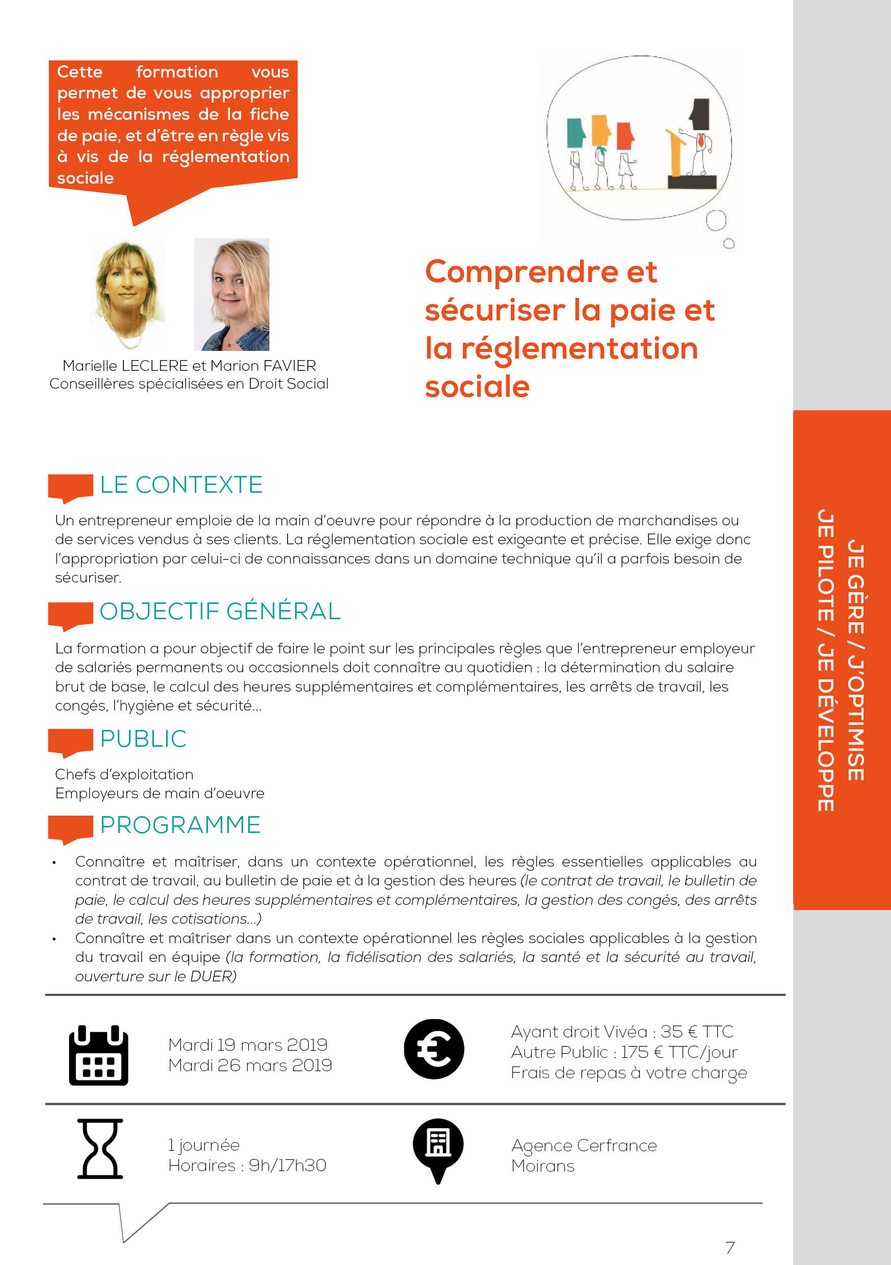 Cette formation a pour objectif de faire le point sur les principales règles que l'entrepreneur employeur de salariés permanents ou occasionnels doit connaître au quotidien : la détermination du salaire brut de base, le calcul des heures supplémentaires et complémentaires, les arrêts de travail, les congés, l'hygiène et sécurité.